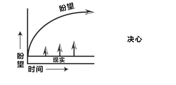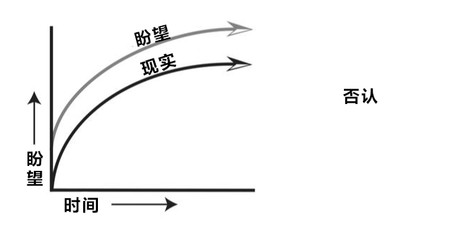 下图展示了人们为弥合期望与现实之间的鸿沟所付出的种种努力。然而往往,这样的决心不过是在既有的苦难之上,再添一层新的折磨。